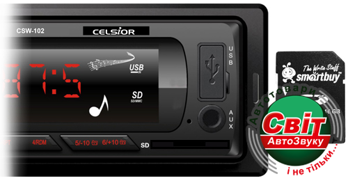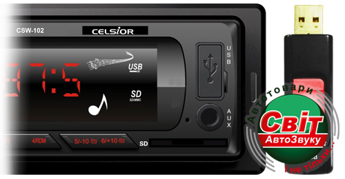 Автомагнітола Celsior CSW-102GБездисковый MP3/SD/USB/FM проигрыватель.Фиксированная лицевая панель.