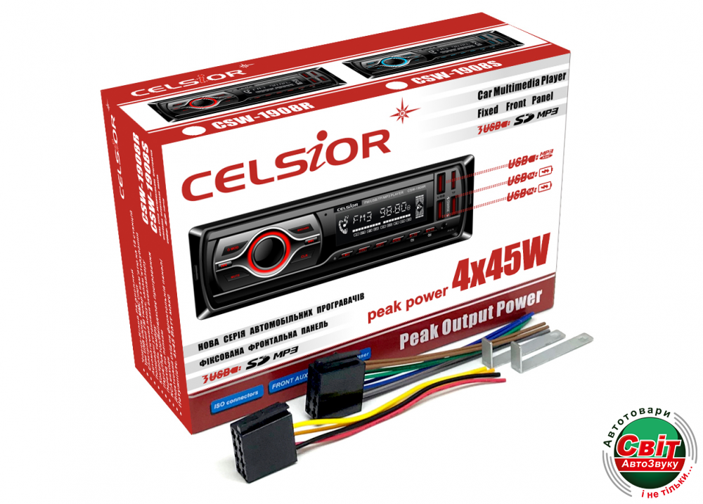 Автомагнітола Celsior CSW-1908R- Бездисковый MP3 / SD / USB / FM проигрыватель.
