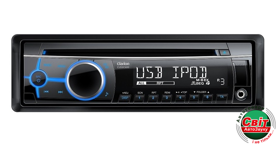 Автомагнітола Clarion CZ202ERUРесивер для воспроизведения компакт-дисков, файлов MP3 И WMA с интерфейсом USB, съемная передняя панель