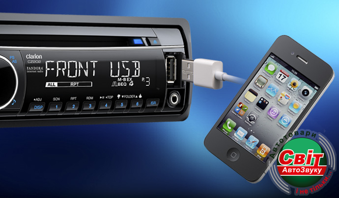 Просто подключите iPod или iPhone к USB-разъему головного устройства и наслаждайтесь прослушиванием музыки через аудиосистему автомобиля. Плеером iPod можно управлять (в том числе использовать поиск по алфавиту) с помощью кнопок на панели ресивера или с помощью кольца управления iPod.