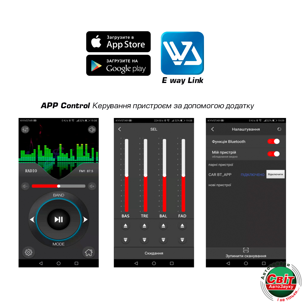- Управління магнітолою через мобільний додаток по Блютуз (Eway Link);