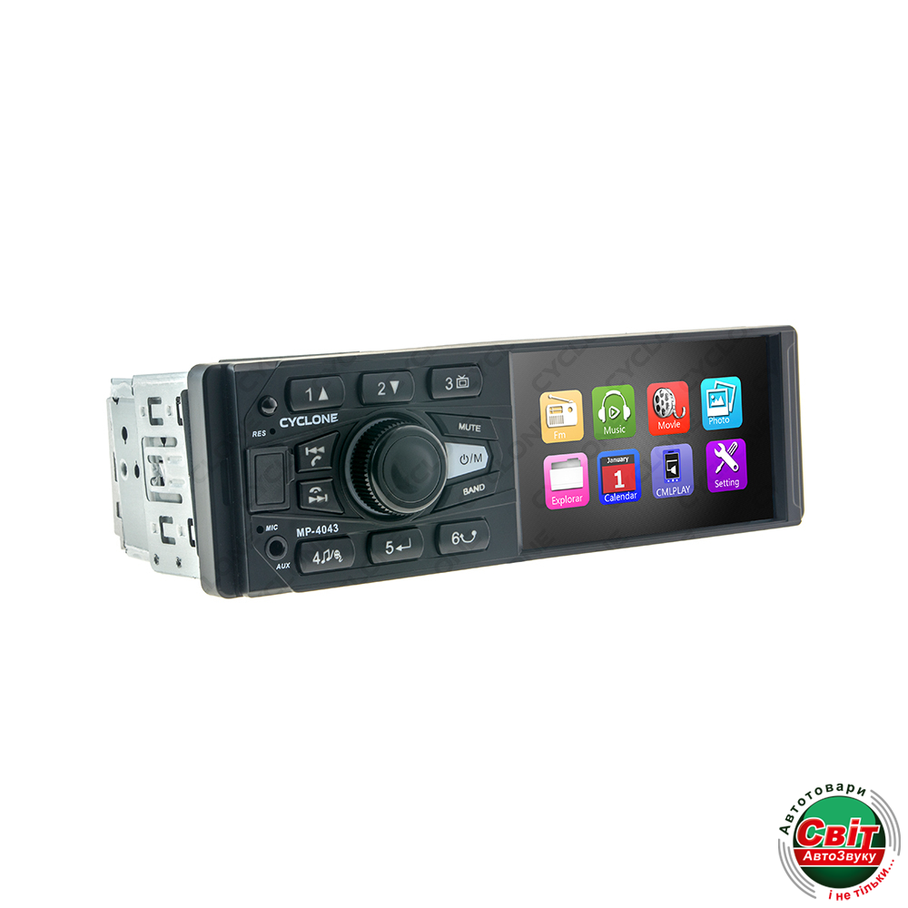 Автомагнітола Cyclone MP-4043Универсальная 1DIN мультимедийная автомагнитола CYCLON MP-4043 AV BT, Фиксированная передняя панель, Русифицированное меню, Улучшенный звук, Высокая выходная мощность (4 х 50 Вт), 4.1" TFT качественный дисплей, Изменяемая подсветка кнопок (6 цветов), Воспроизведение аудио, видео, фото с USB и microSD, Подключение камеры заднего вида, Модуль Вluetooth.