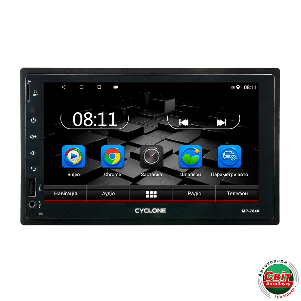 Автомагнітола Cyclone MP-7040 ANDУниверсальная магнитола CYCLONE MP-7040 под управлением операционной системы Android 7,1 – это воплощение передовых технологий и инновационных функций, которые доставят истинное удовольствие за рулём, и позволит быть в курсе всех событий и на связи в любое время и в любом месте.