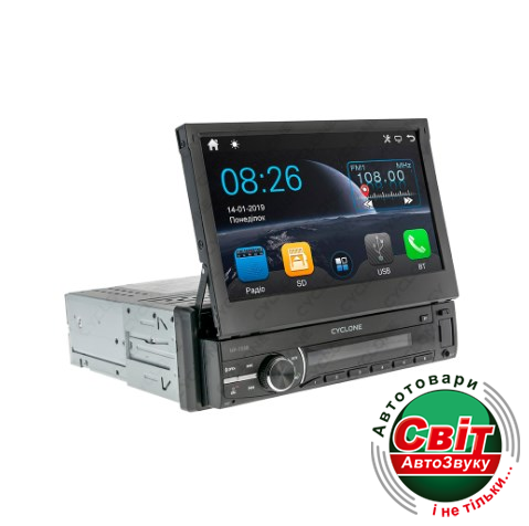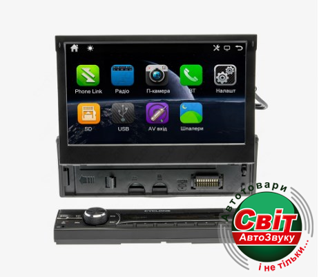 - Универсальная 1 DIN магнитола со съёмной лицевой панелью, изменяемой подсветкой кнопок и дисплея, моторизованный емкостной 7" TFT дисплей,