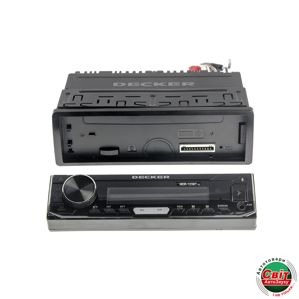 - Автомагнітола DECKER MDR-123 BT з якісним звучанням і широкими можливостями по налаштування звуку, 2 виходи для підключення сабвуфера, змінювана підсвітка дисплея і кнопок управління. Зйомна передня панель, Bluetooth з A2DP, вхід для підключення зовнішнього мікрофону. Яскравий, контрастний дворядковий VA дисплей.