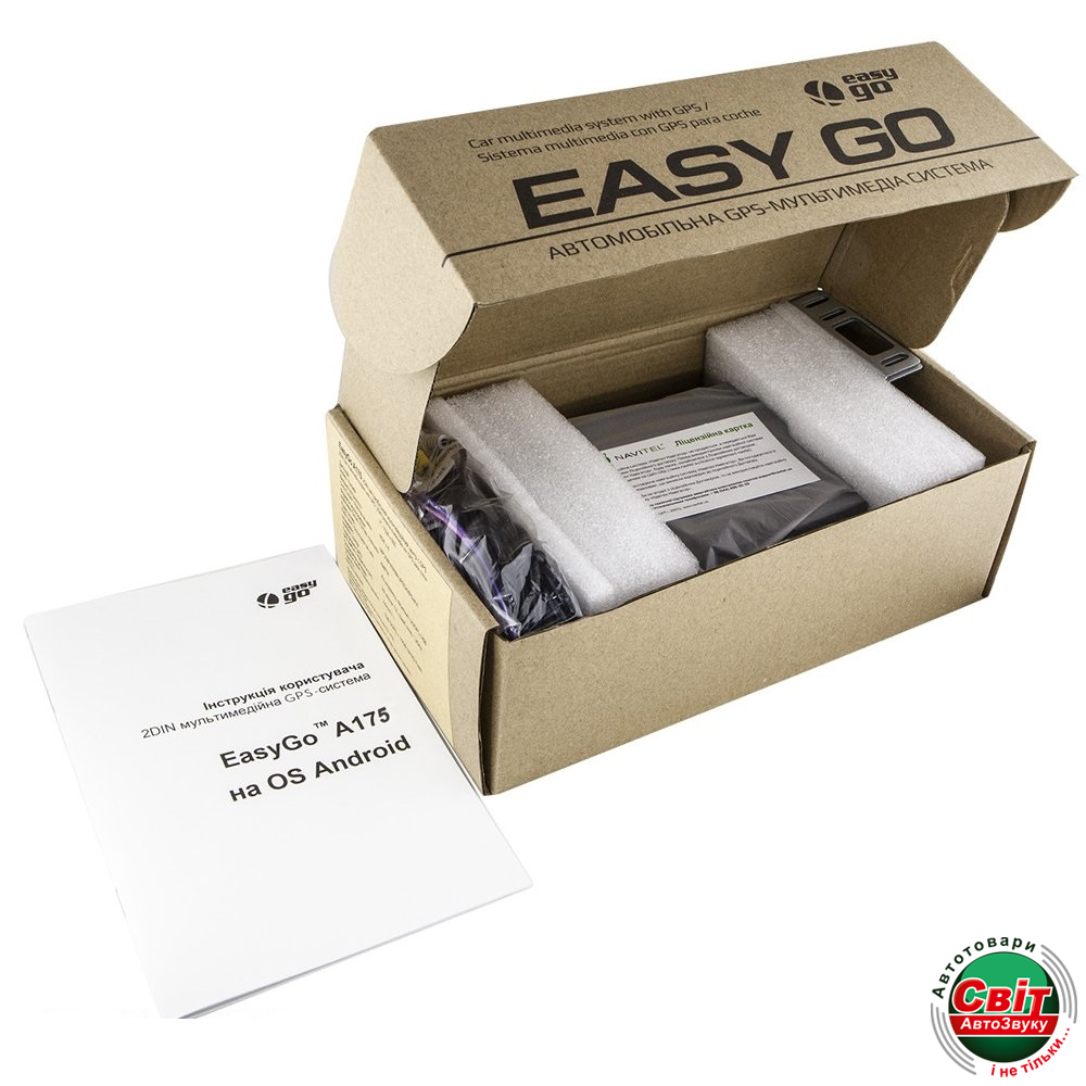 Автомагнітола EasyGo A175Это универсальный мультимедийно-навигационный центр, предназначенный для установки в автомобили с 2DIN шахтой для головного устройства. Особенностью данной модели является небольшая толщина, что значительно облегчает установку. Она оснащена широкоформатным сенсорным дисплеем, размером 7 дюйма, с разрешением 1024х600 точек, который прекрасно дополняет салон. Работает на операционной системе Android 7.1, со всеми современными функциями, это значительно расширяет радиус возможностей, скачивать и устанавливать любые приложения через Play Market, что даёт вам возможность гибкой настройки магнитолы под себя и свои вкусы. Выход в интернет возможен через телефон или 3G модем. Данная мультимедийная система имеет функцию управления магнитолой с помощью кнопок на руле, а также есть возможность подключения камеры заднего вида, парковочных систем, которые облегчат и сделают более комфортным управление автомобилем.