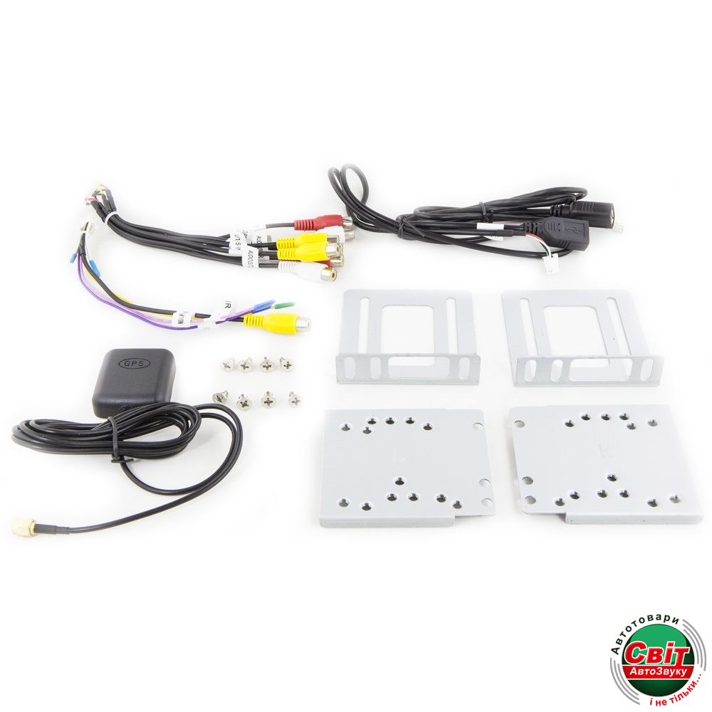 Комплектация: головное устройство, комплект установочных кабелей, GPS антенна (выносная), 2 вида боковых креплений, инструкция на украинском языке.