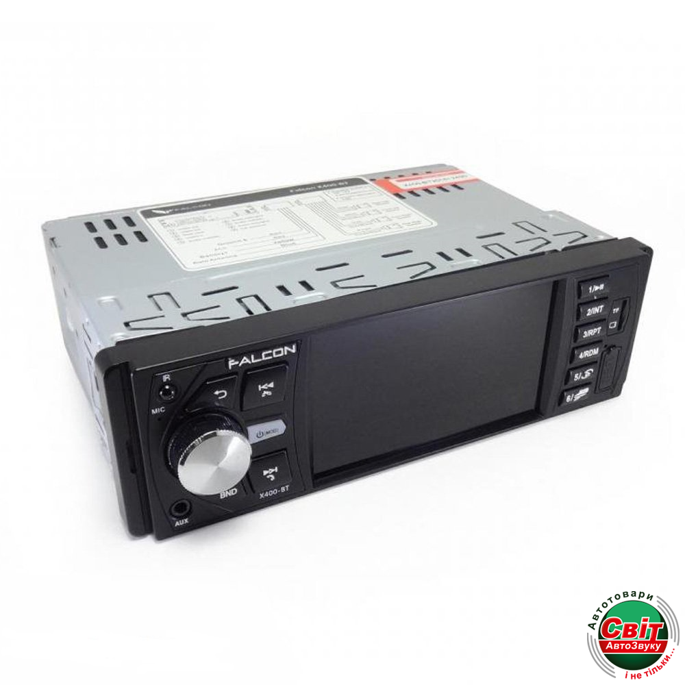 Falcon X400-BT має високу вихідну потужність 4х45 Вт. Модель оснащена 4-х дюймовим екраном , що дозволяє для таких розмірів відмінно бачити картинку , відтворену на екрані. Автомобільна магнітола може відтворювати безліч форматів : MKV/AVI/MPEG1,2/MP4/3GP/DVD/FLASH; MP3/WMA/WAV/OGG; JPG/BMP/TIFF .Розмір моделі стандартний і дуже зручний для монтажу - 1DIN
