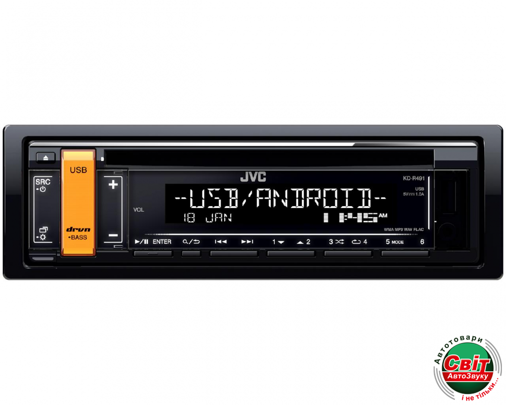 Автомагнітола JVC KD-R491CD-приемник JVC KD-R491 с фронтальным USB для воспроизведения музыки в Android, а также входное гнездо AUX для других переносных музыкальных запоминающих устройств. На большом легко читаемом ЖК-дисплее будут отображаться треки, исполнители, данные альбома с вашего смартфона Android. Включена опция управления рулевым колесом, а мощный усилитель мощностью 50 x 4 Вт повысит мощность вашей системы. Поставляется с переменной подсветкой цветной клавиатуры, соответствующей вашей приборной панели.