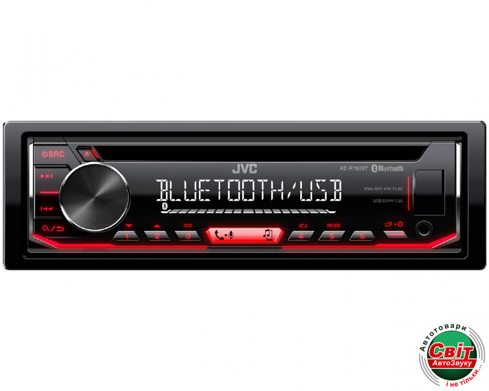 Автомагнітола JVC KD-R792BTАвтопроигрыватель KD-R792BT, принадлежит к модельному ряду 2017 года, это надежный ресивер, с хорошим внешним видом, высоким качеством звучание, как в верхнем, так и нижним регистре, и большим количеством функций.