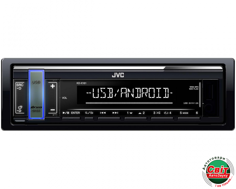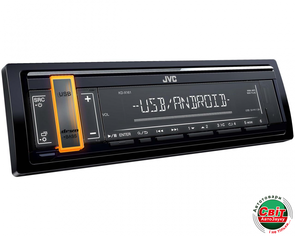 Автомагнітола JVC KD-X161Автопрогравач JVC KD-X161 призначений для встановлення в легкові автомобілі, що відповідають типорозміру 1DIN. Модель отримує живлення від 12-вольтової бортової електромережі. Автопрогравач характеризується максимальною вихідною потужністю 4×50 Вт.