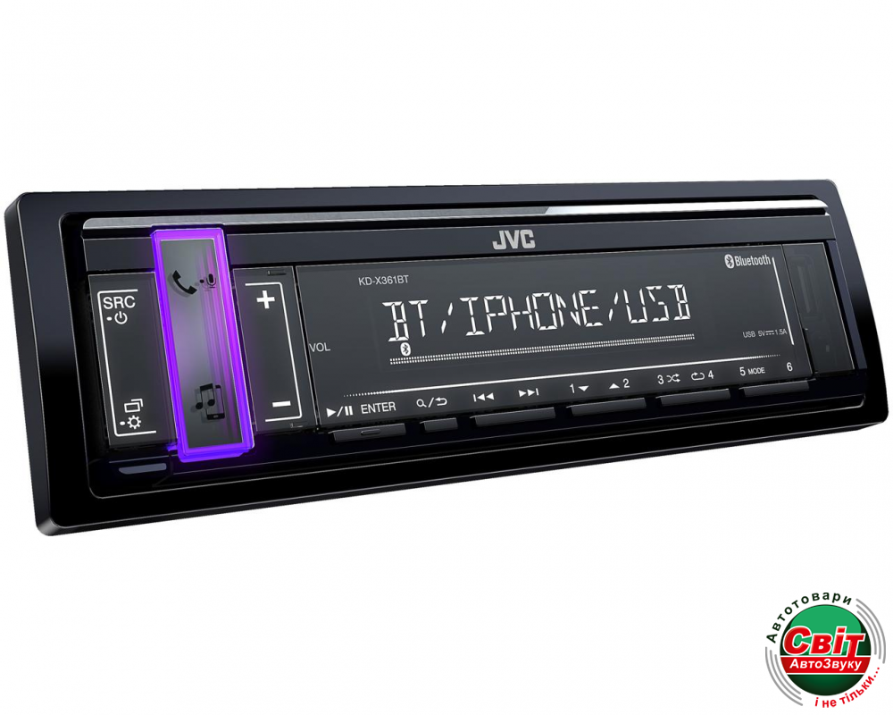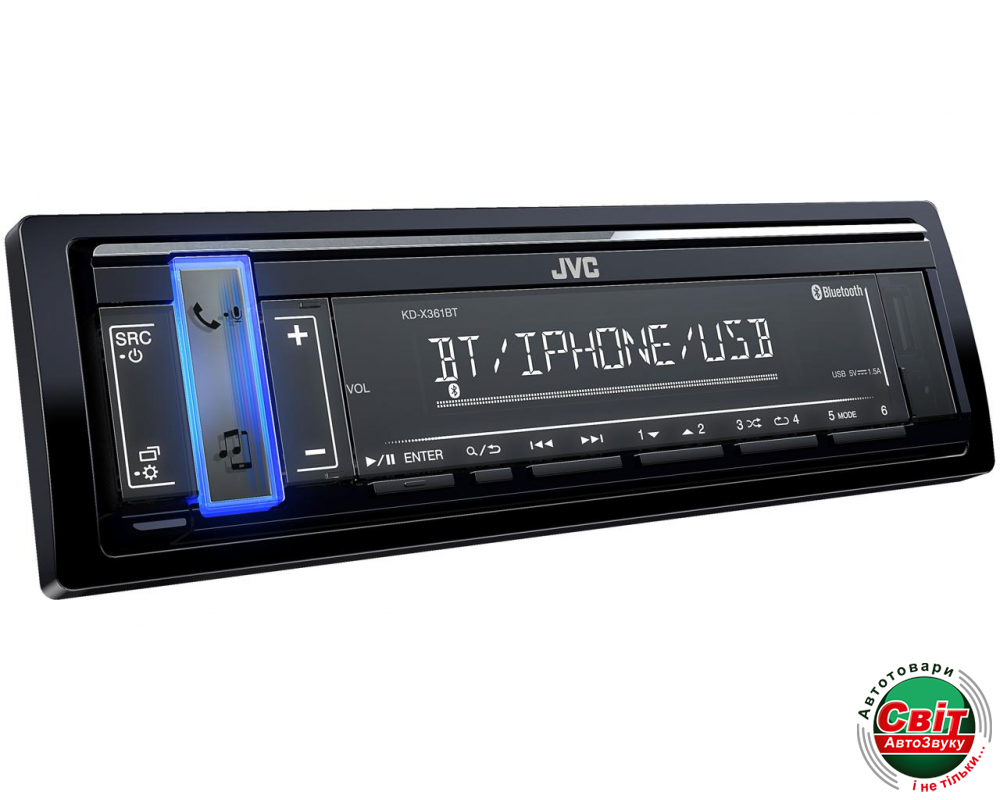 Автомагнітола JVC KD-X361BTЦифровий ресивер JVC KD-X361BT в чорному корпусі має компактні розміри. Крім цього у нього безліч плюсів: високочутливий тюнер FM, що віщає радіостанції в діапазоні FM, що дозволить слухати улюблену радіостанцію в дорозі і насолоджуватися лаконічним звучанням. МР3-декодер, перетворюють цифровий сигнал в чистий звук. Пристрій читає аудіо формати МР3. Його монохромний дисплей споживає мінімум енергії, незважаючи на це, інформація на ньому чудово читається.