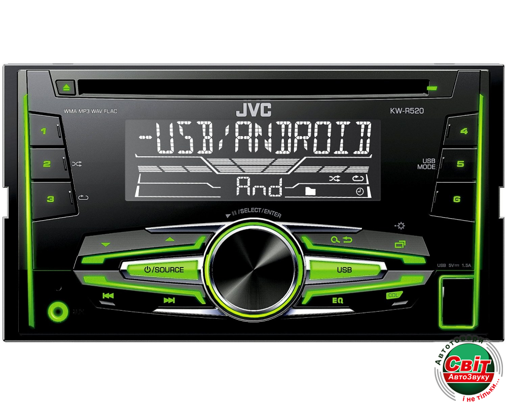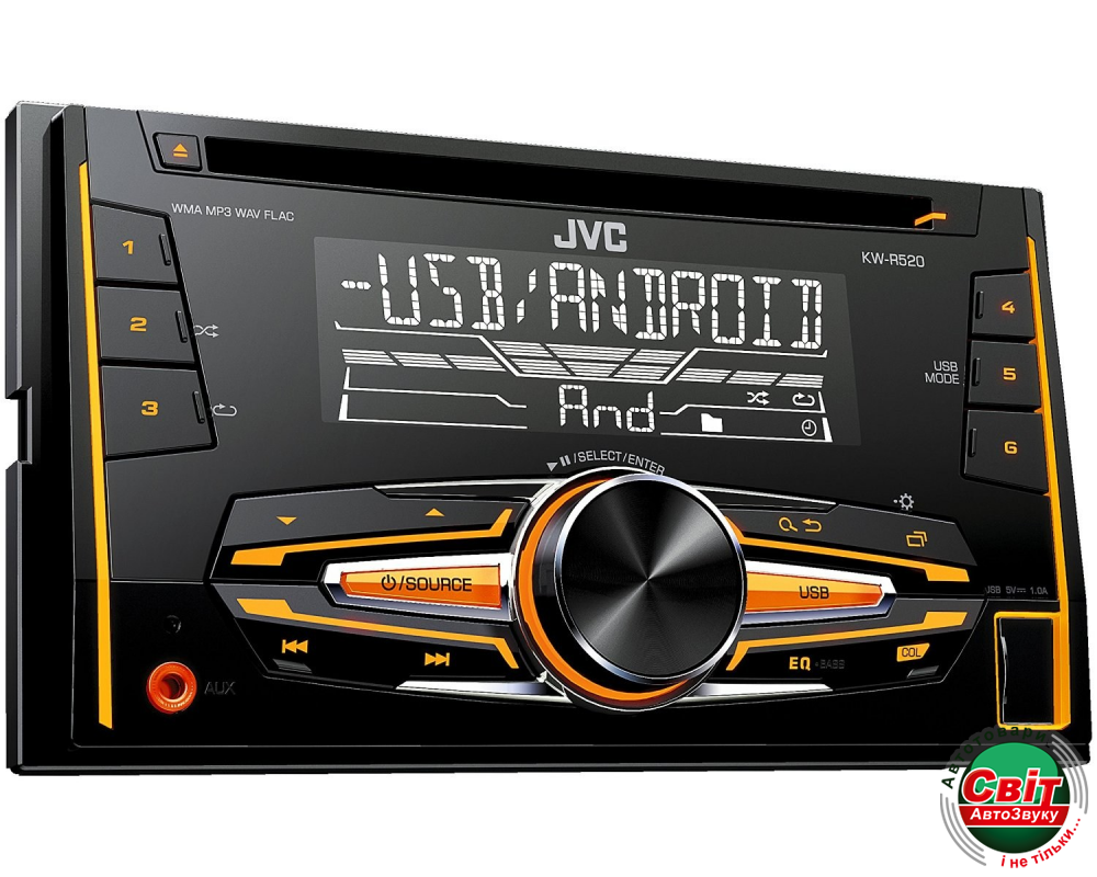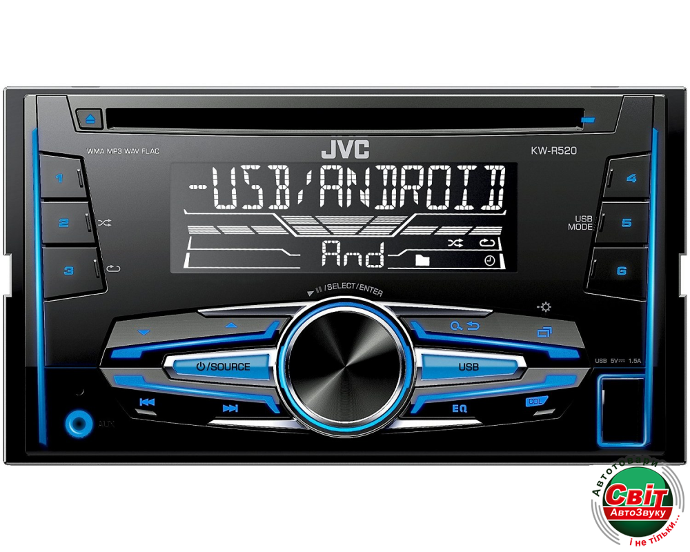 Автомагнітола JVC KW-R520QN2DIN автомобильный CD-MP3-USB-ресивер с чтением WAV и FLAC, усилителем MOS-FET и регулировкой цвета подсветки и русскоязычным меню