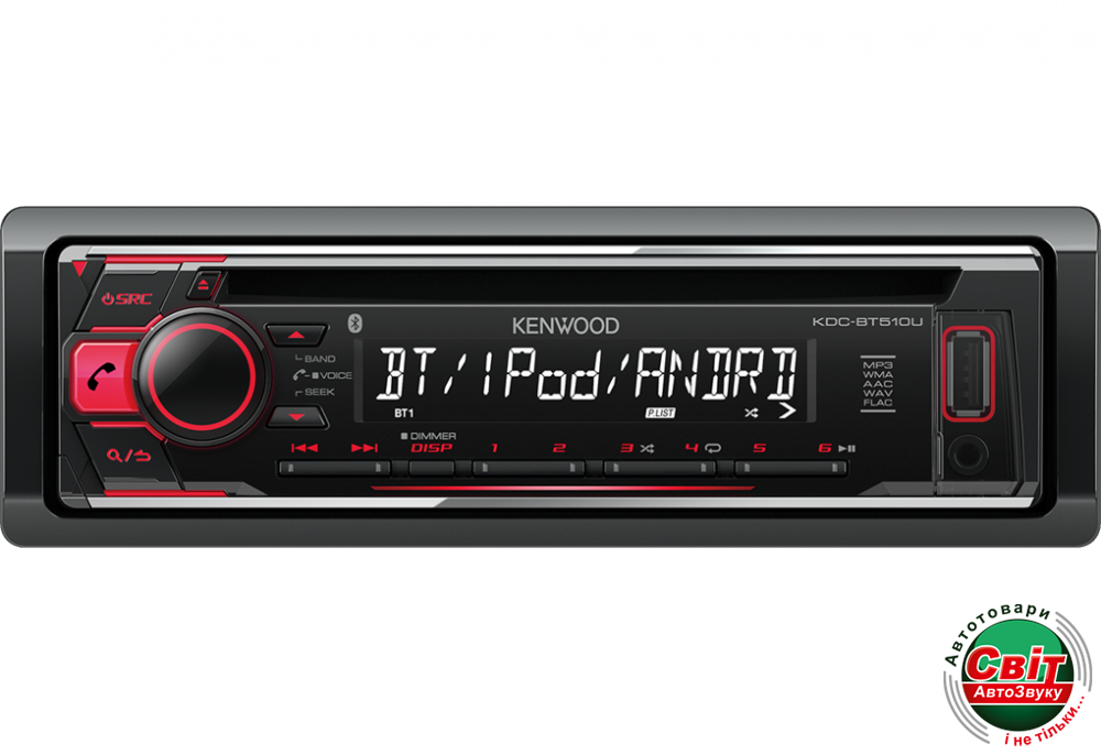 Автомагнітола Kenwood KDC-BT510U1DIN CD-ресивер 2017, Bluetooth, FLAC 24бит/48кГц,1 п. лин. вых., покан. упр.,13-п. экв., DSP, DTA, удобная настр. со смартф.