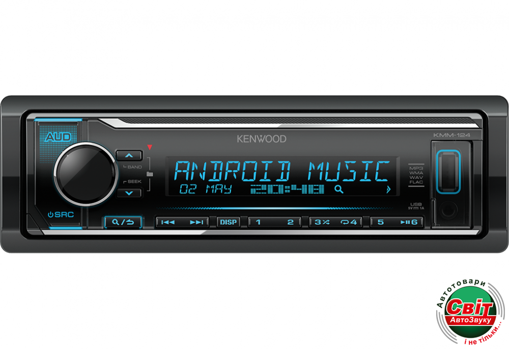 Автомагнітола Kenwood KMM-124Цифровий медіаприймач з фронтальним USB і AUX-ходом
