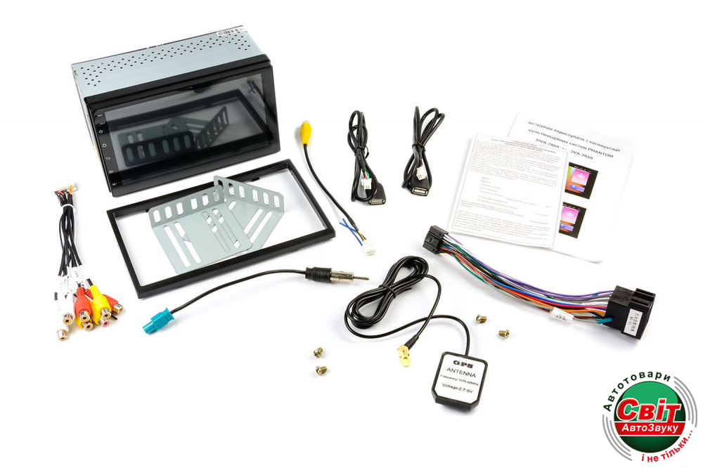 - Кабель для подключения к разъему автомобиля (с разъемом ISO).