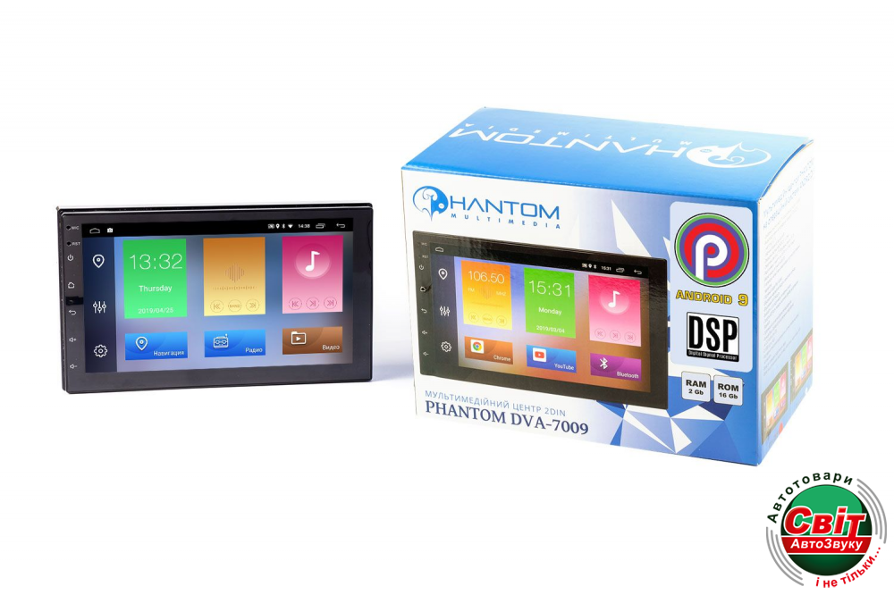 Автомагнітола Phantom DVA-7009 DSPЭто 2 DIN универсальный 7 дюймовый мультимедийный центр под управлением современной операционной системы Android 9 с использованием 4-ядерного процессора Cortex A7 с частотой 1,2 ГГц и 2 гигабайт оперативной памяти.