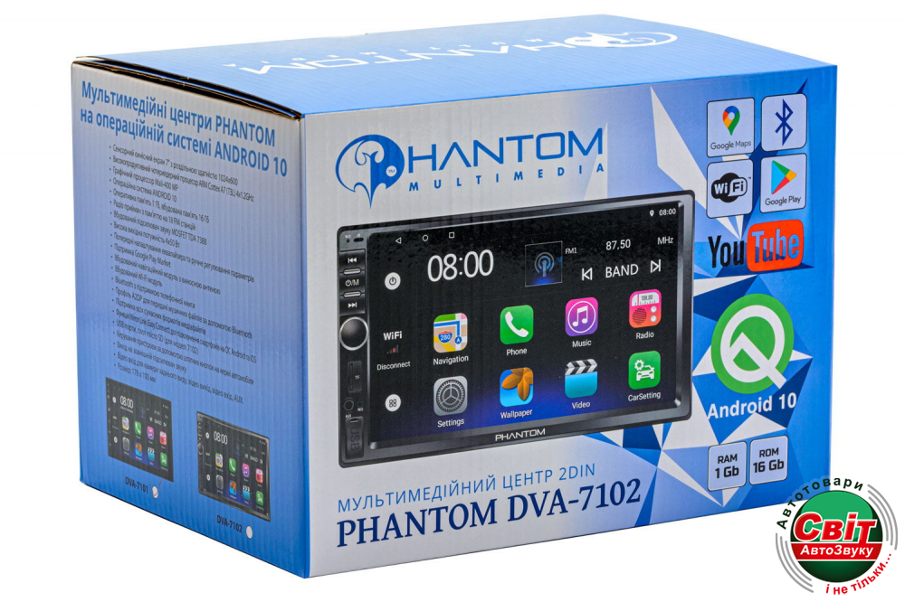 PHANTOM DVA-7102 - це універсальний 7 дюймовий мультимедійний центр 2 DIN під управлінням сучасної операційної системи Android 10 з 4-ядерним процесором Cortex A7 1,2 ГГц, 1 Гб оперативної пам'яті і 16 Гб вбудованої пам'яті. Завдяки такому поєднанню, користувач отримує мультимедійний центр, який має набагато більший функціонал і продуктивність, ніж пристрої, що працюють під управлінням інших операційних систем.