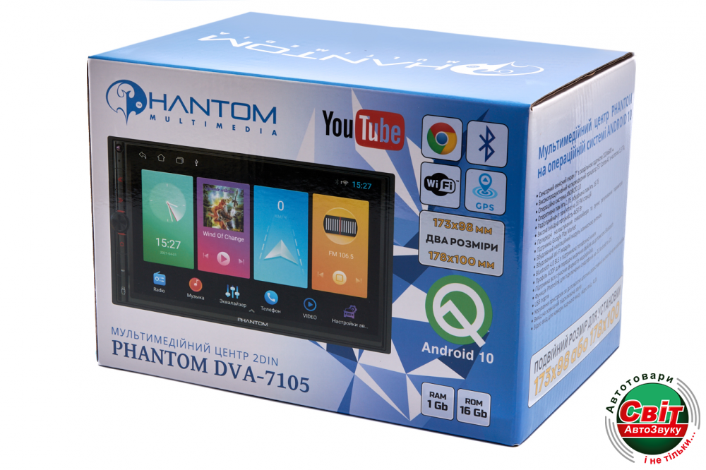 Автомагнітола Phantom DVA-7105Це універсальний 7 дюймовий мультимедійний центр 2-DIN під управлінням сучасної операційної системи Android 10 з 4-ядерним процесором Spreadtrum SC7731E Cortex A7 1,3 ГГц, 1 Гб оперативної пам'яті і 16 Гб вбудованої пам'яті. Завдяки такому поєднанню, користувач отримує мультимедійний центр, який має набагато більший функціонал і продуктивність, ніж пристрої, що працюють під управлінням інших операційних систем.