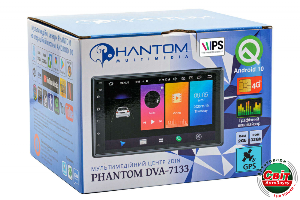 PHANTOM DVA-7133 - это универсальный 7 дюймовый мультимедийный центр 2 DIN с 2,5D IPS HD экраном 1024х600 и современной операционной системой Android 10 .Процессор и память. 4-ядерный процессор Cortex A7 1,2 ГГц, 2 Гб оперативной памяти и 32 Гб встроенной памяти. 2 USB порта на задней части устройства (длина кабеля 1м) для подключения USB накопителей до 64 Гб * и жестких дисков до 1 Тб *