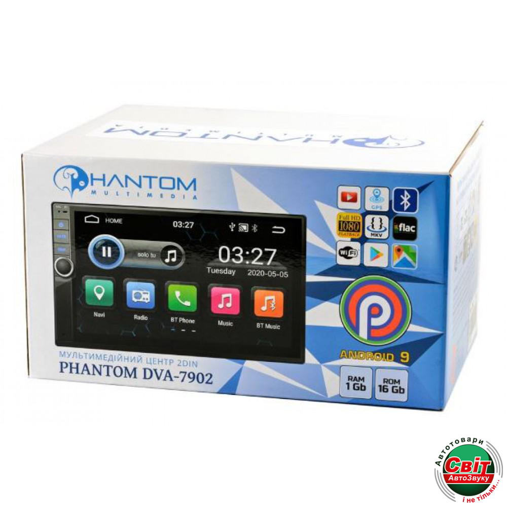 - Phantom DVA-7902 – это 2 DIN универсальный 7 дюймовый мультимедийный центр под управлением современной операционной системы Android 9 с использованием 4-ядерного процессора Cortex A7 с частотой 1,2 ГГц и 1 гигабайт оперативной памяти.
