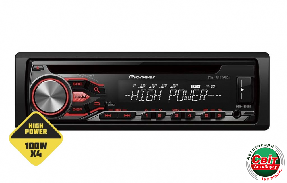 Автомагнітола Pioneer DEH-4800FDОтличается оригинальным встроенным усилителем класса FD (с удвоенной выходной мощностью 4х100 Вт), который разработан специально для получения высокой выходной мощности при минимально возможном энергопотреблении. Инновационная схемотехника позволила получить высокий КПД и радикально снизить тепловые потери. Головные устройства способны работать стабильно продолжительное время на предельных мощностях, при этом практически не нагреваясь.