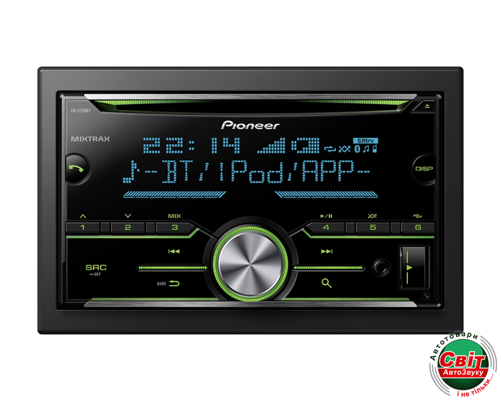 Привлекательный, выполненный в форм-факторе 2DIN CD-ресивер FH-X730BT, имеет достаточно места для расширенного растрового дисплея, а также для крупного регулятора громкости и банка из шести кнопок предварительной настройки, так что вы можете сразу же выбрать любимую FM-станцию и многое другое.