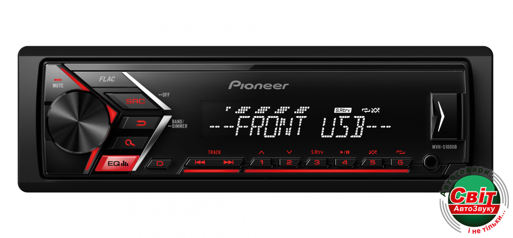 Автомагнітола Pioneer MVH-S100UBАвтомобильный цифровой медиаресивер с RDS тюнером, USB, Aux-входом, поддержкой аудиоформата FLAC, совместимый с смартфонами на Android