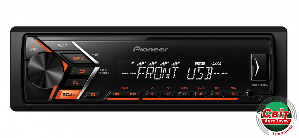 Автомагнітола Pioneer MVH-S100UBAАвтомобильный цифровой медиаресивер с RDS тюнером, USB, Aux-входом, поддержкой аудиоформата FLAC, совместимый с смартфонами на Android