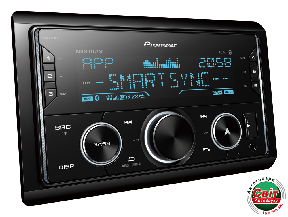 Автомагнітола Pioneer MVH-S620BTЦе надійний цифровий медіа-ресивер від бренду Pioneer, з модулем Bluetooth, Spotify, Pioneer Smart Sync, USB портом і повним суміщенням з пристроями Apple і Android.