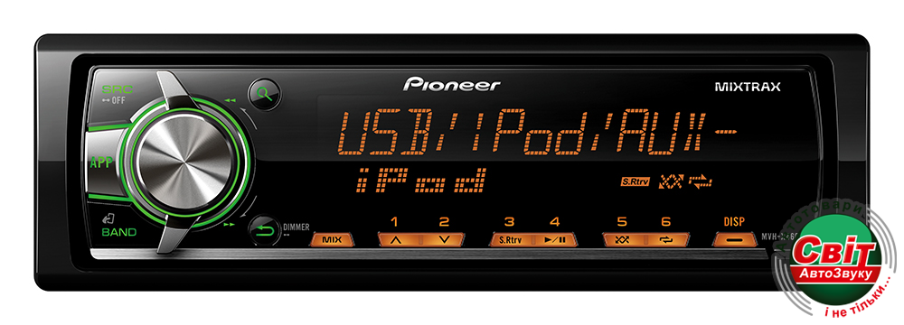 Отримайте максимум від мобільного медіатеки з MVH-X460UI завдяки порту USB на тиловій панелі і додаткового AUX-входу. З прямим управлінням iPod і iPhone можна підключити мобільний пристрій безпосередньо до USB порту медіаресівера і насолоджуватися досконалим звуком. Зручним доповненням до використання вашого iPod або iPhone буде можливість зарядки мобільного пристрою при підключенні до MVH-X460UI.