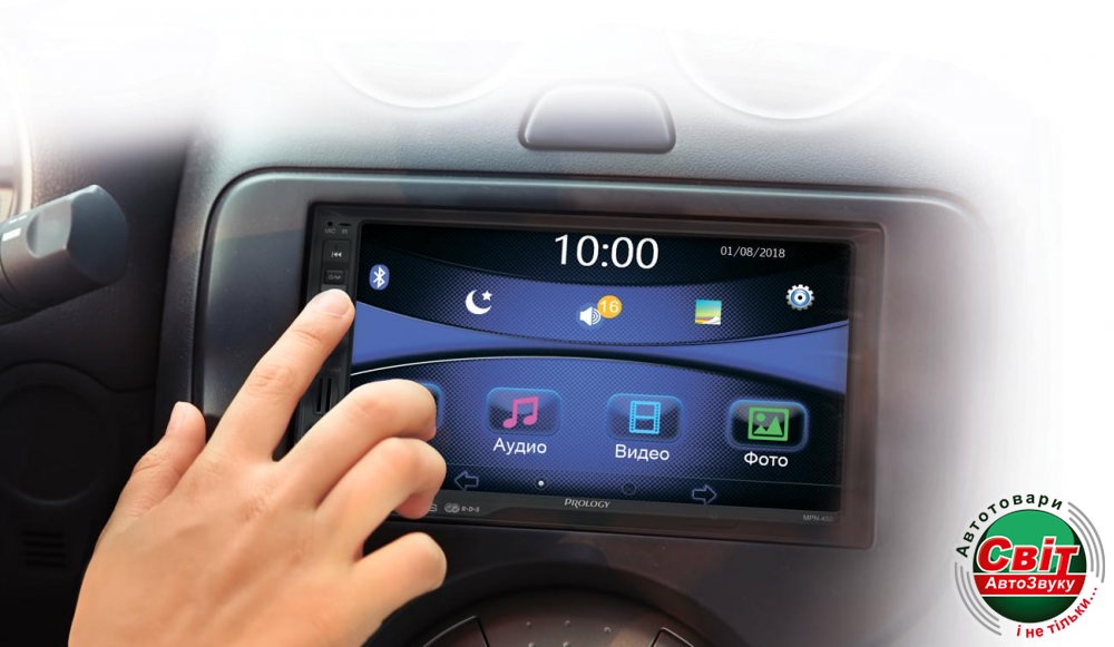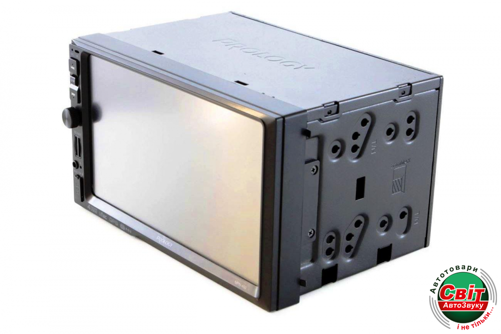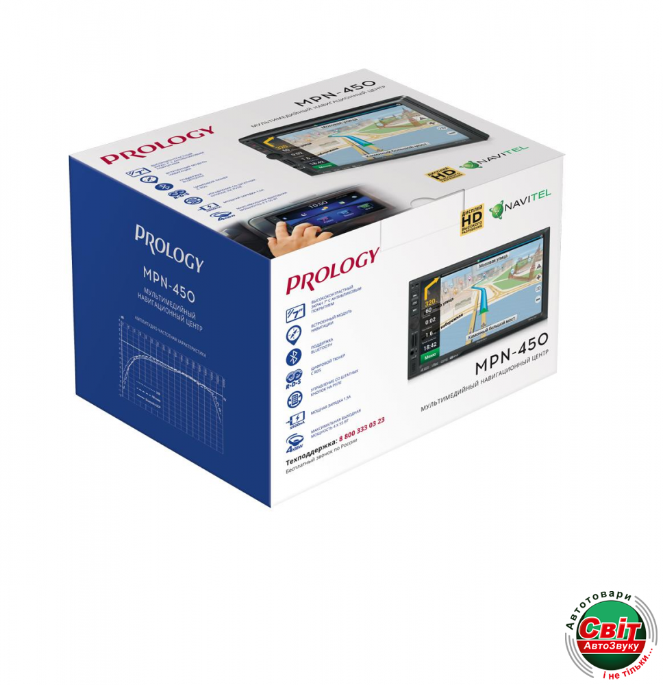 Автомагнітола Prology MPN-450Мультимедийный навигационный центр PROLOGY MPN-450 монтажного размера 2DIN обеспечивает прием радиостанций в диапазонах FM/УКВ, воспроизведение медиафайлов, записанных на карты памяти USB/microSD, работу с навигационным программным обеспечением "Навител Навигатор"®, управление мобильным телефоном и воспроизведение звука через интерфейс Bluetooth®, а также передачу звука и видеоизображения с внешних источников.