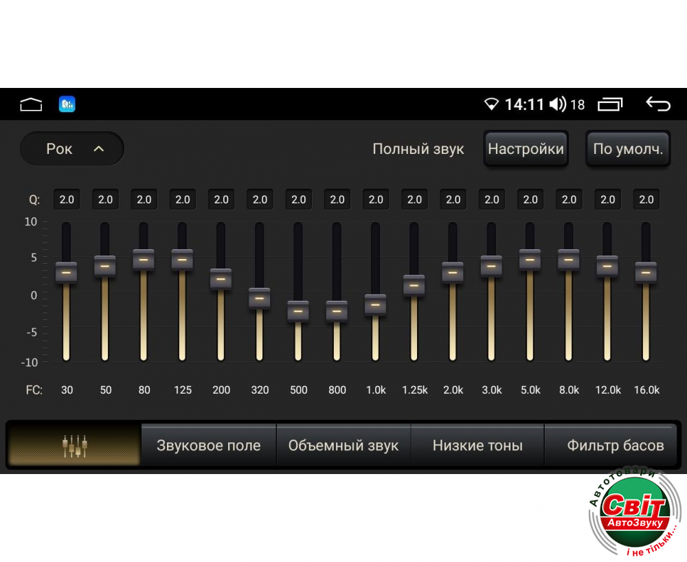 Штатная магнитола Abyss Audio MP-0146 оснащена усилителем звука TDA7851 и цифровым DSP аудиопроцессором, которые создают в салоне Toyota Prado J150 2014-2016 объемную и сочную звуковую картину. С помощью эквалайзера на 16 полос можно настроить акустику под свои предпочтения: частоту среза, уровни частот и отдельный блок для настроек сабвуфера позволяют достичь высочайшего уровня детализации звука.