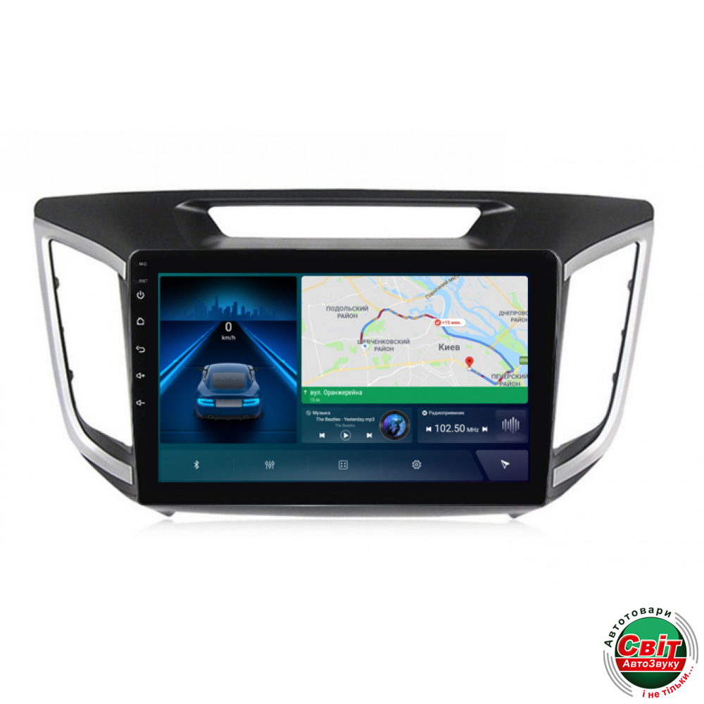 Abyss Audio QS-0215 DSP – штатная магнитола для Hyundai Creta, ix25 под управлением ОС Android 10 Q. Комплектуется лицензионной картой Navitel Украина, которую можно использовать как с Интернетом, так и без него. В онлайн режиме она построит маршрут, позволяющий избежать пробок, ремонтов дорог и различных перекрытий.