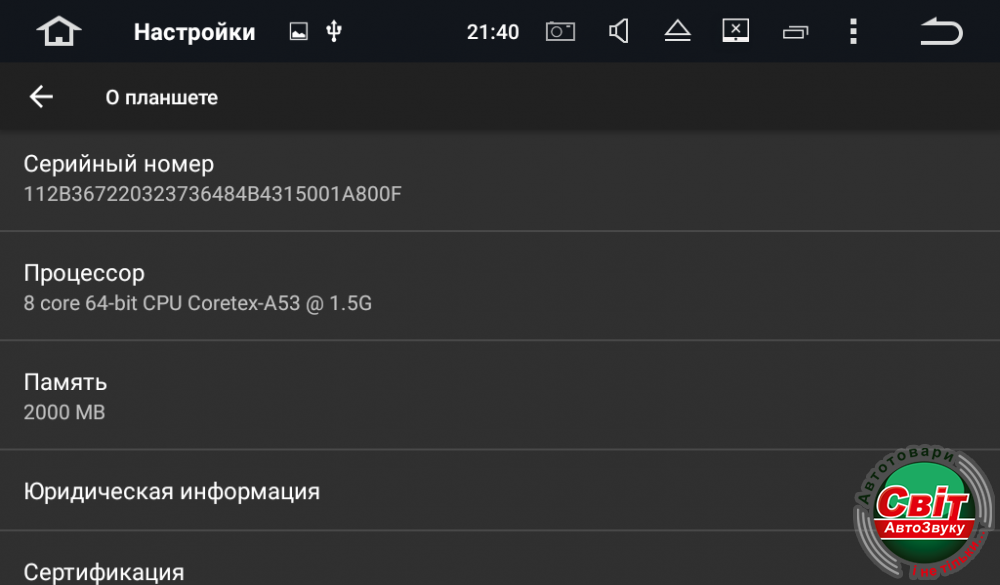 - 1.6 GHz Cortex А53 (8и-ядерный)