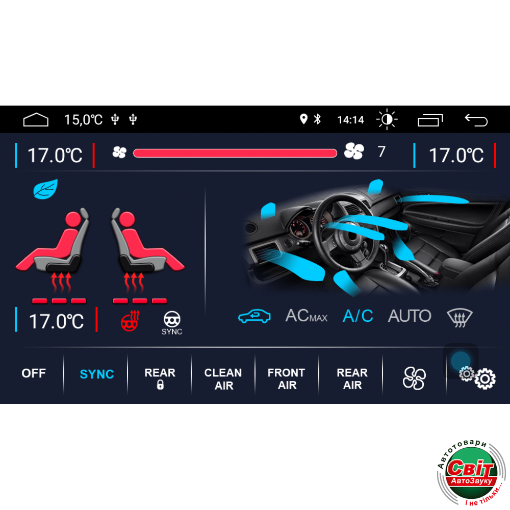 - Отображения информации климат контроля и датчиков комфорта автомобиля (Сlimate control support);