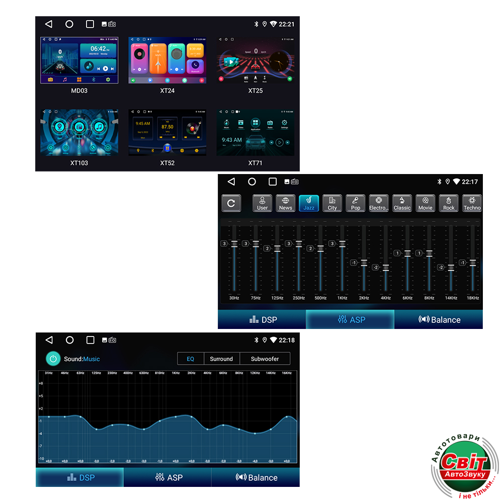 Магнітола на ОС Android оснащена сучасним 4-х ядерним процесором із частотою в 1,2 Ghz та 2GB оперативної пам’яті. Ці характеристики дозволять відтворювати музичні файли, відео файли (високої роздільної здатності), а також використовувати будь-які навігаційні програми без гальмування та з максимальною комфортністю.