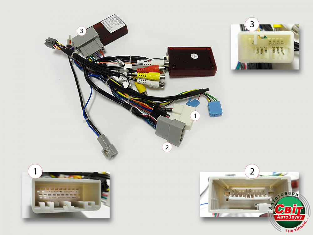 - Видеовход, вход под камеру заднего вида, видеовыход