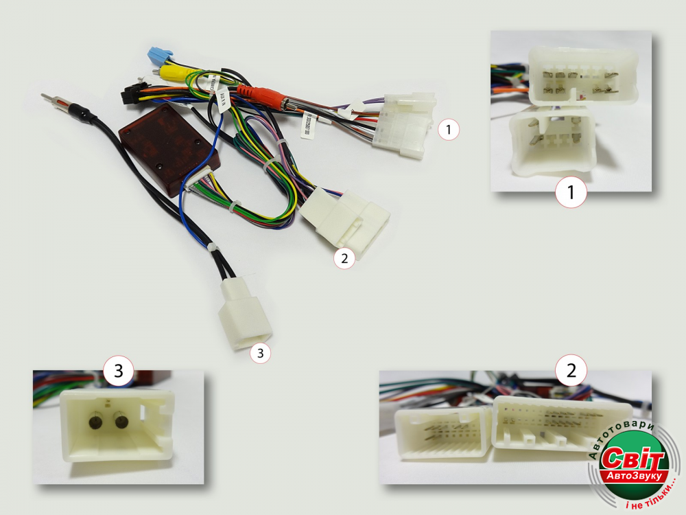 - Видеовход, вход под камеру заднего вида, видеовыход