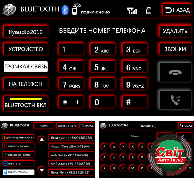 - Ответ и набор номера через сенсорный дисплей системы