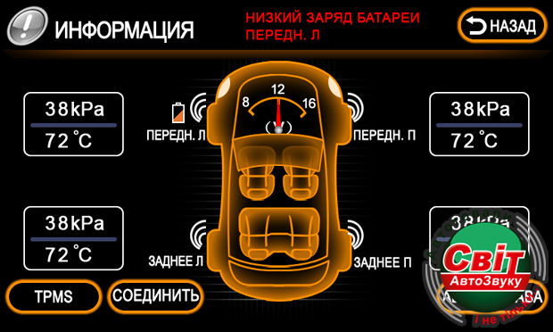 Датчики давления и температуры колёс (опция):