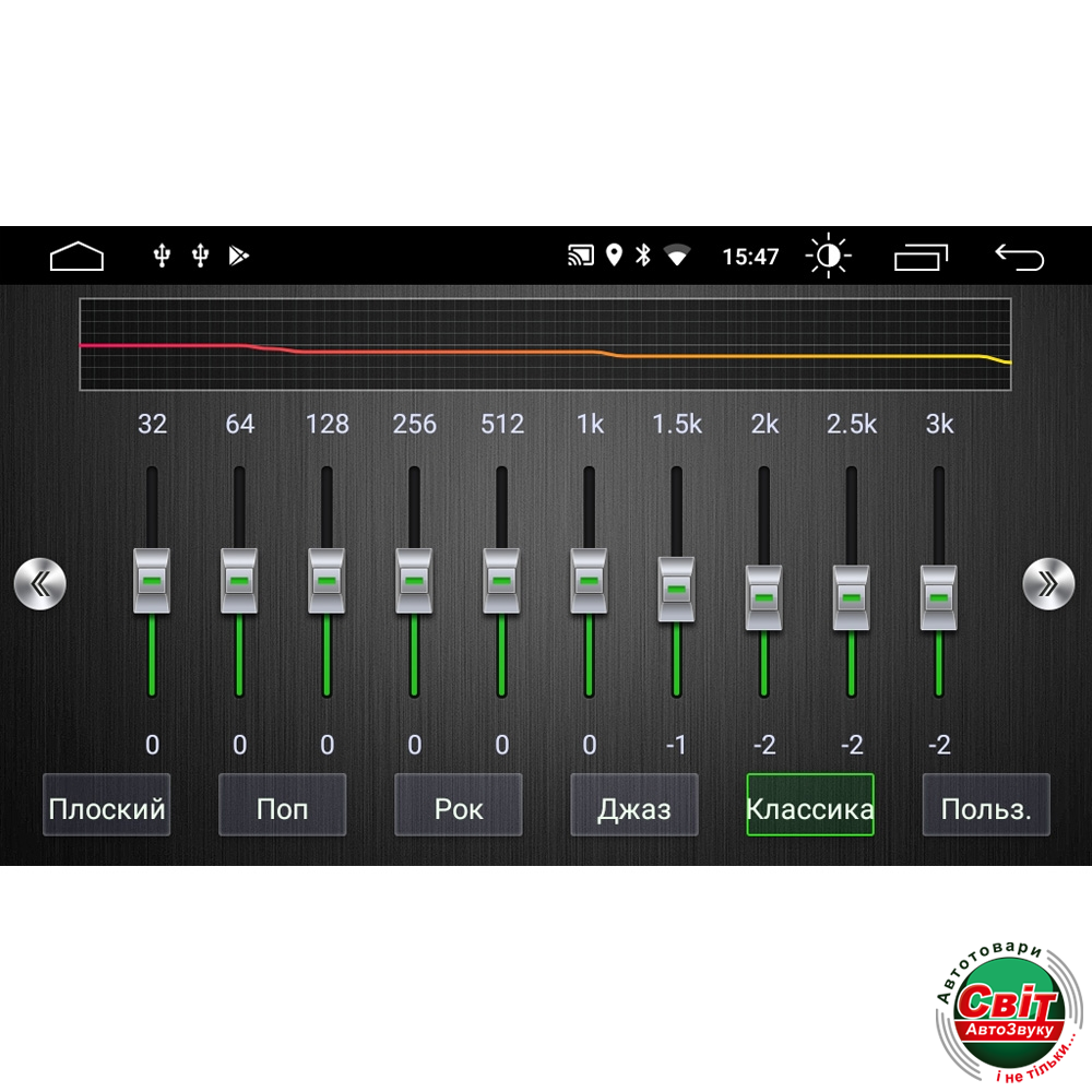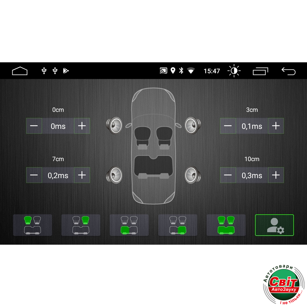 Встроенный аудио усилитель TDA 7850 обладает мощностью 4х55 Вт, что позволит подключить одновременно фронтальные и тыловые динамики. Встроенный FM/AM тюнер с функцией RDS Philips NXP6856. Встроенный цифровой сигнальный процессор DSP позволяет настраивать звук с высокой точностью и высокой детализацией при помощи 30 полосного эквалайзера, регулировки временных задержек, баса и различных фильтров.