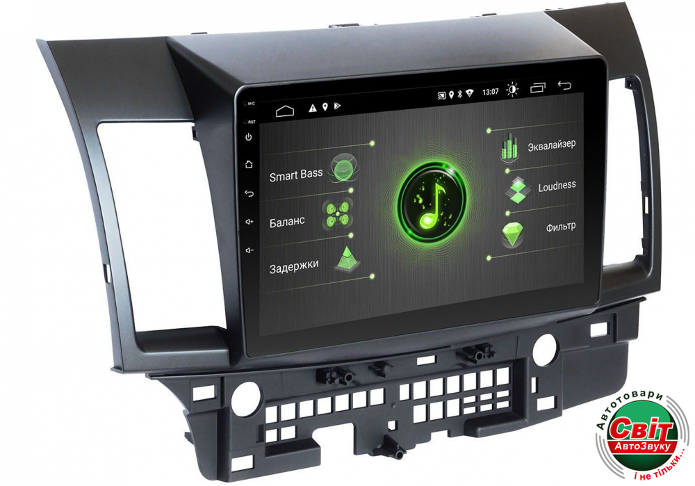 Головное устройство разработано и подходит на Mitsubishi Lancer X.
