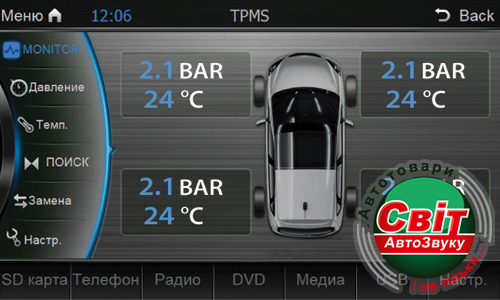 Устанавливая дополнительный блок CA2530(приобретается отдельно) для безопасности движения, водитель получает возможность, контролировать состояние температуры и давления в шинах