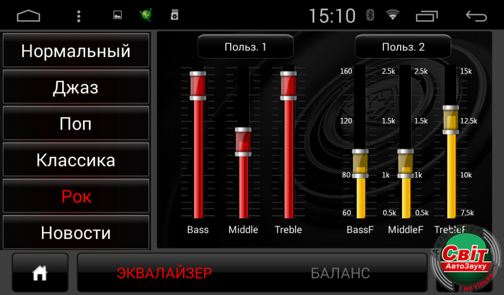 - Эквалайзер НЧ СЧ ВЧ с фильтрами среза + Функция Loud (усиление эффектов)
