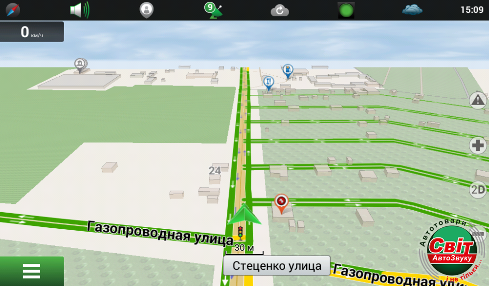 - Два режима настройки, а также выбор динамиков автомобиля для голосовых подсказок навигатора (передние - в этом случае навигация будет говорить не прерывая музыку или все - будут прерывания музыки GPS программой)
