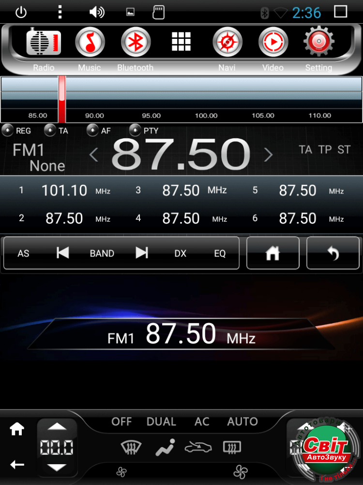 - Встроенный радиомодуль HD Radio NXP 6686 отвечает за прием волны даже при слабом сигнале, что позволяет без помех прослушивать радио. Для записи любимых станций имеется 26 ячеек в FM 87.5-108Mhz 36 и 18 ячеек в AM 522-1161Khz.