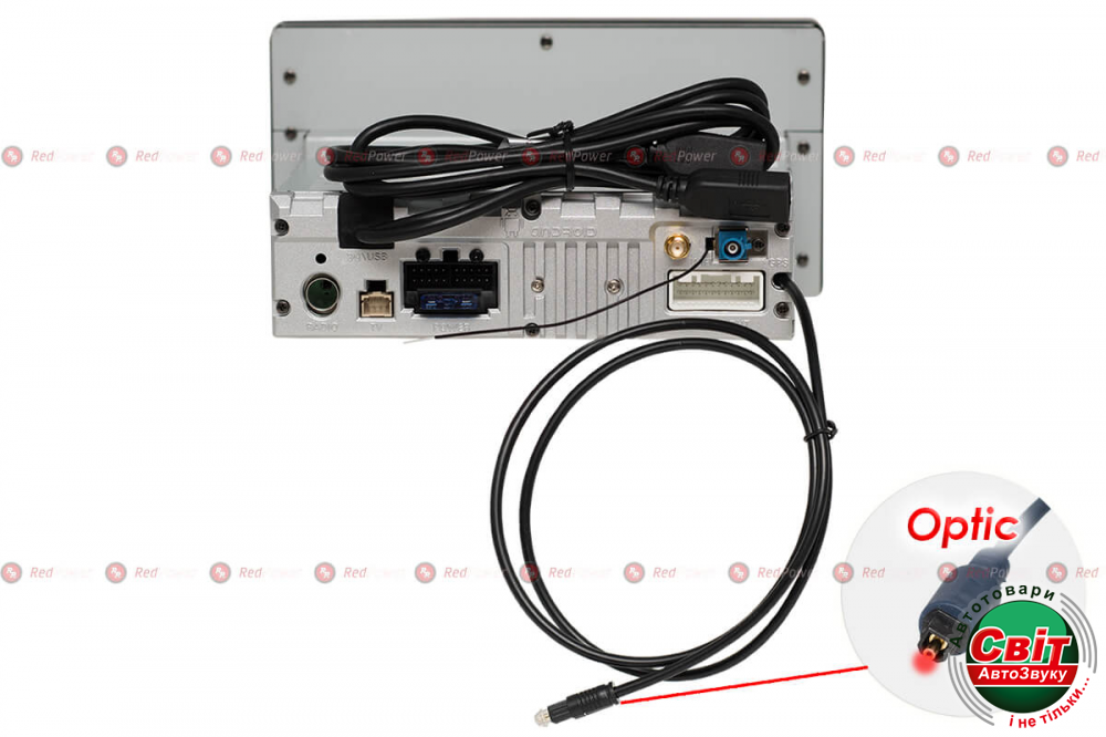 - Линейный видео-выход RCA (тюльпан, дублирует изображение с экрана ГУ) для внешних мониторов.