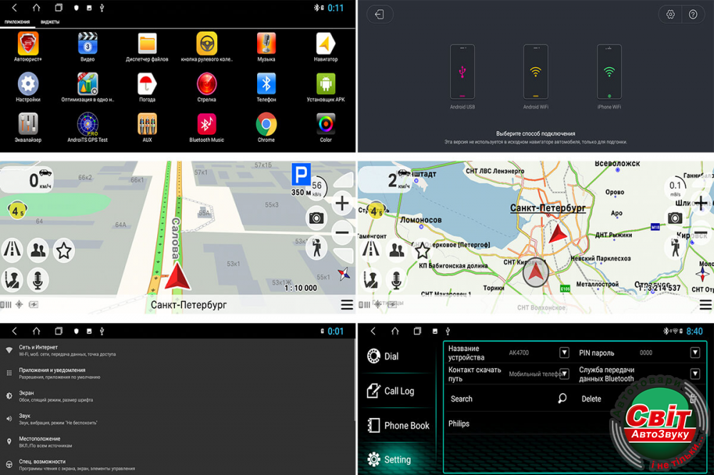 - Bluetooth OBD и TPMS. Автомагнітола может работать с двумя и более каналами передачи данных одновременно через Bluetooth. (Необходима покупка соответствующих устройств и ПО для OS Android);