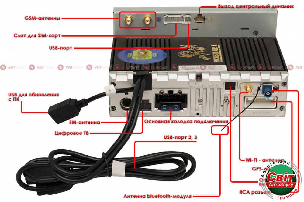 - Подключение цифрового ТВ тюнера Redpower DT9 на 4 ТВ антенны. Формат DVB-T2 с сенсорным управлением.
